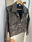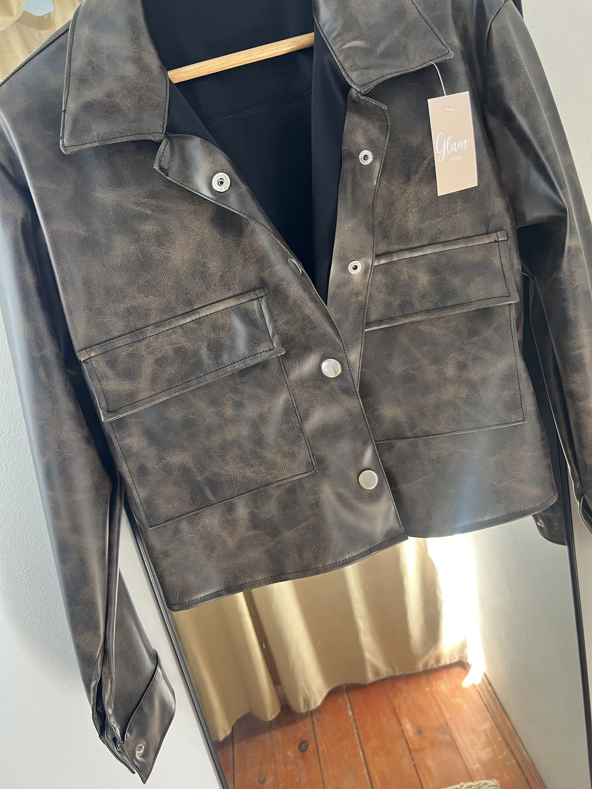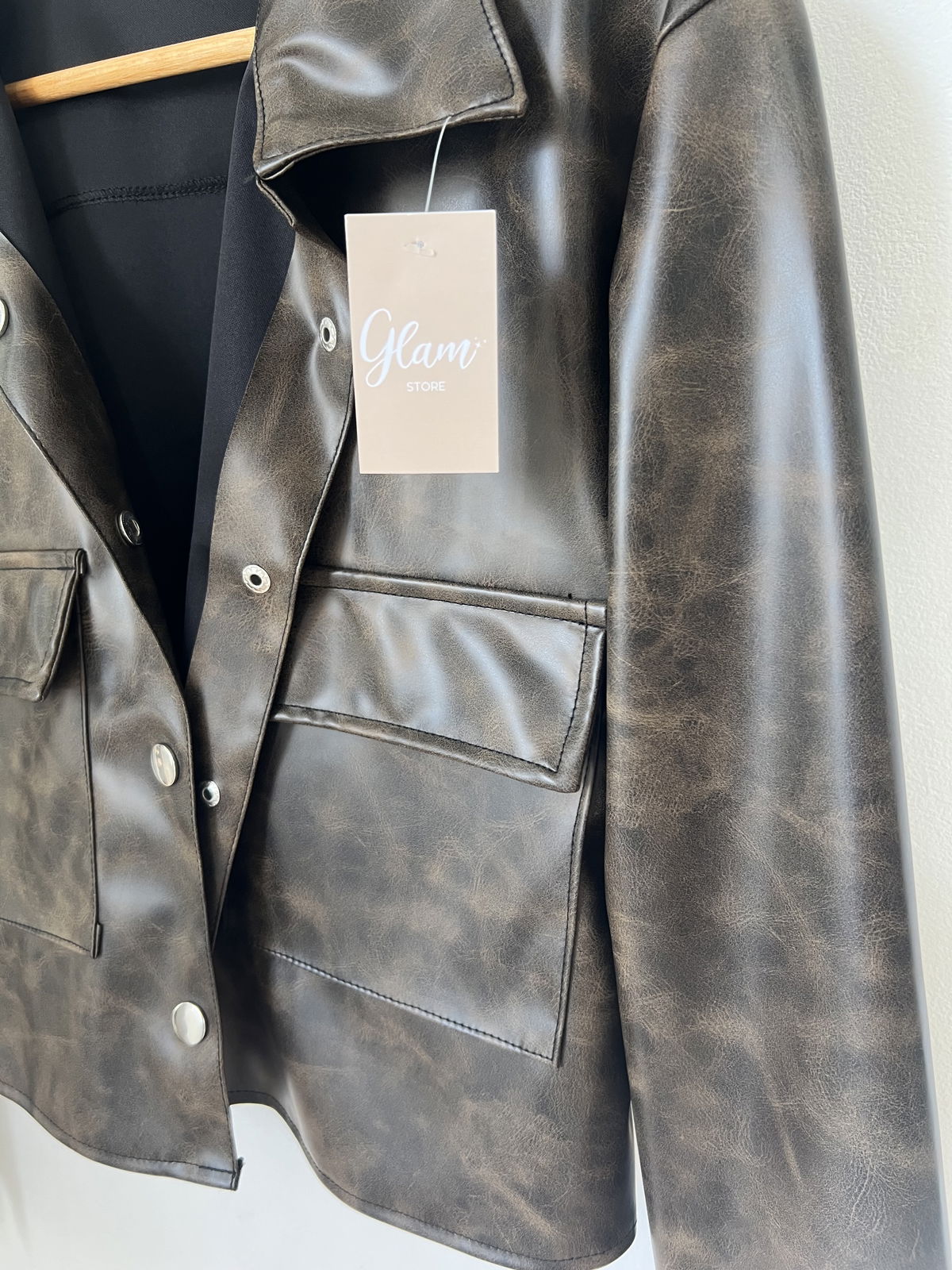 Campera engomada jaspeada, color Chocolate, con botones y bolsillos.