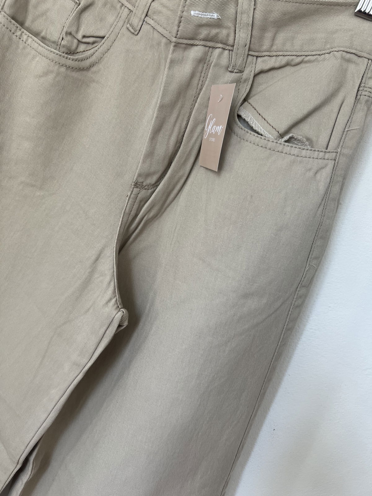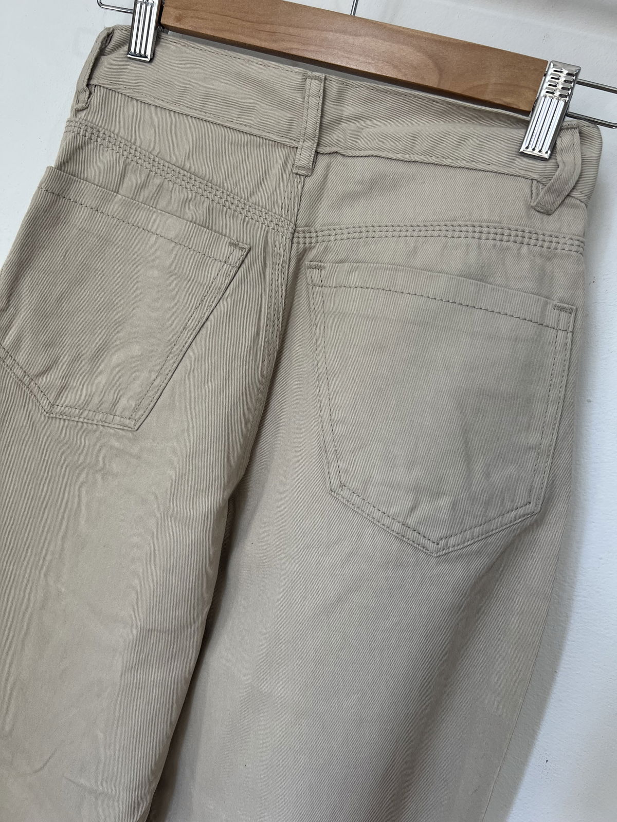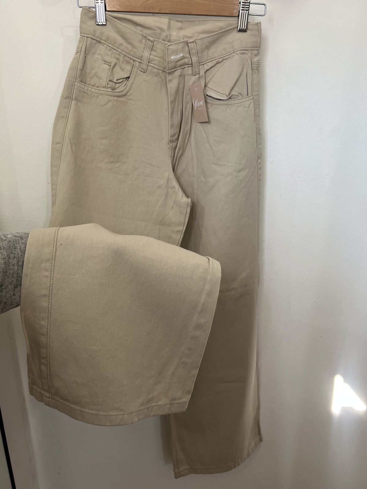 Jeans Wide Leg rígido, color Crema, con bolsillos y pasa cinto.