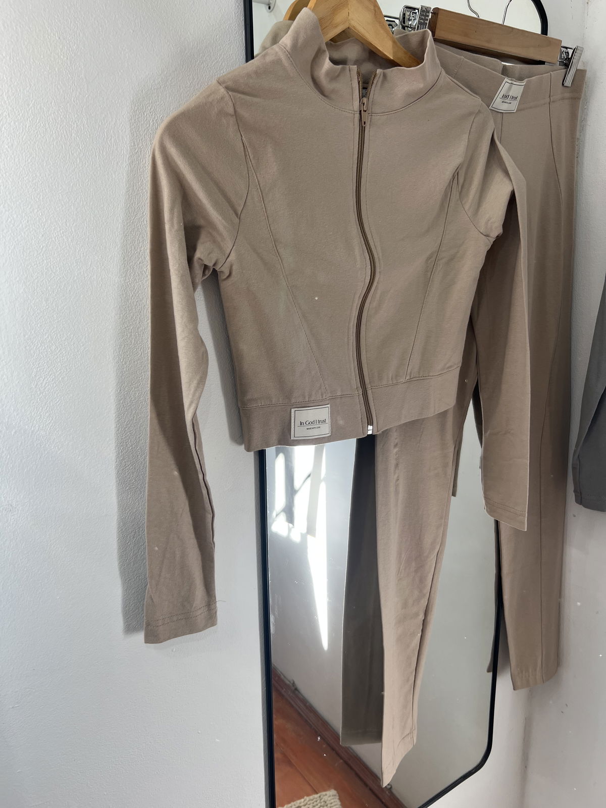 Conjuntos Calza y Campera Crop elastizado de aldogón.