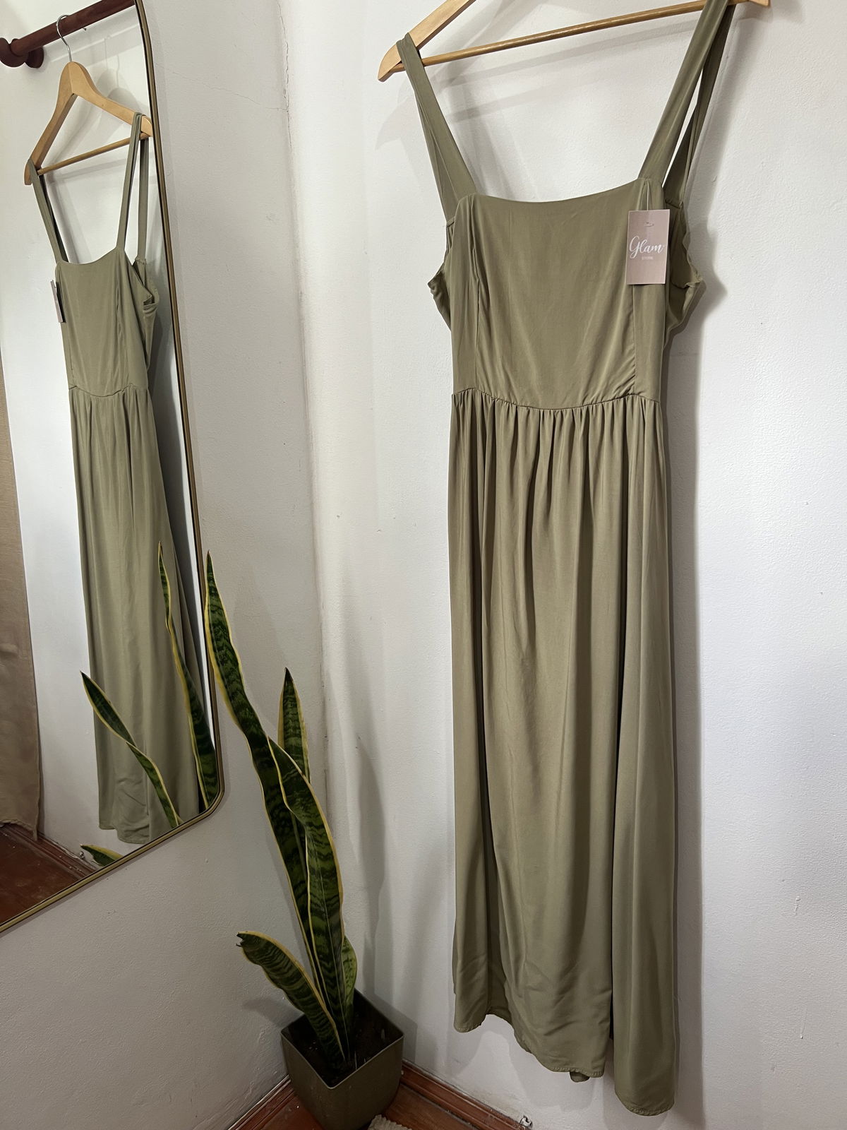 Vestidos largos de Lino con tiras en los hombros y lazo en la espalda para atar.