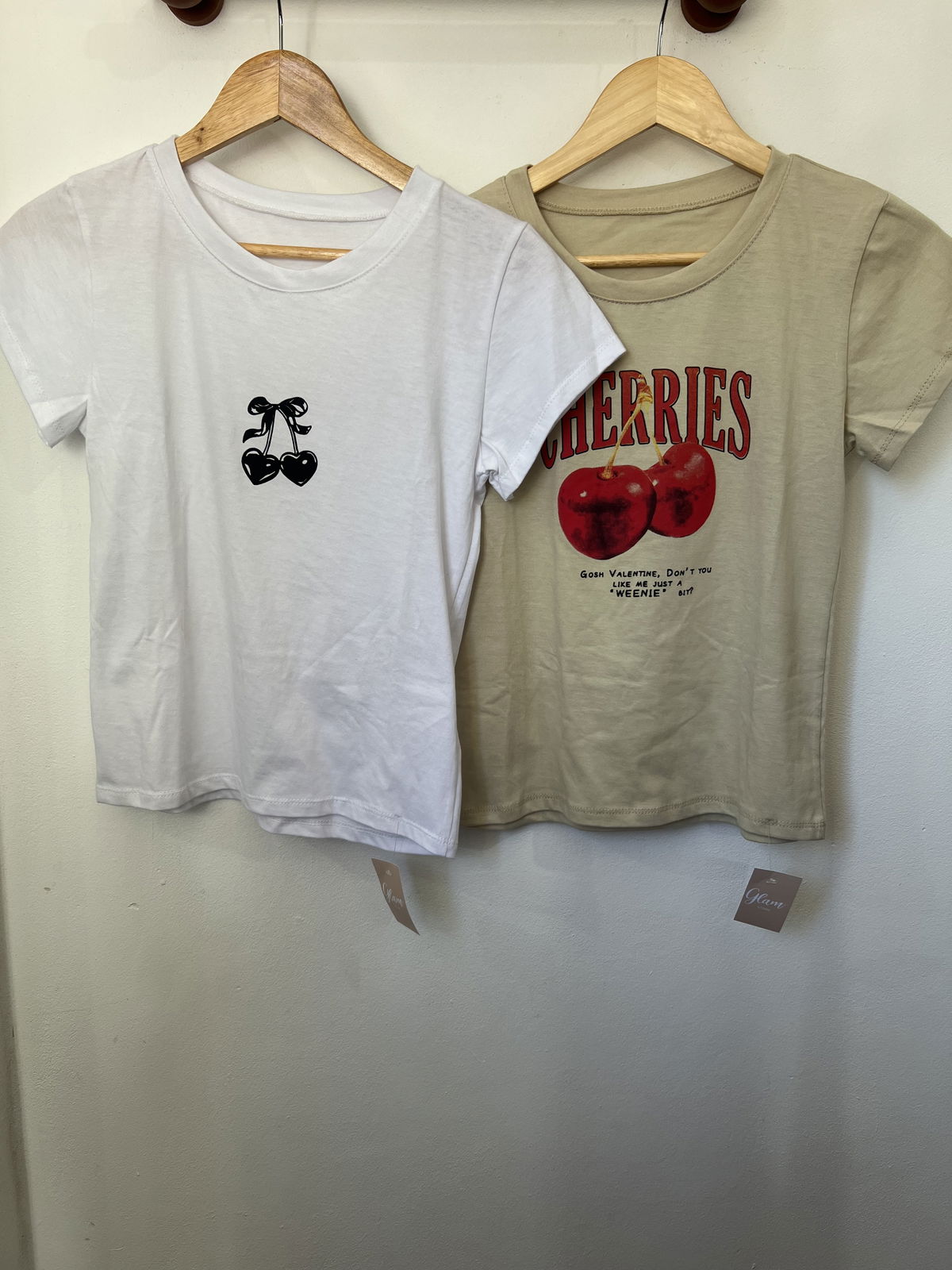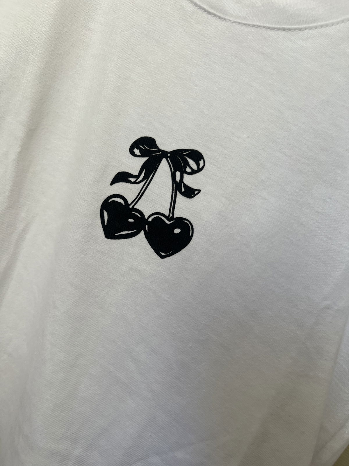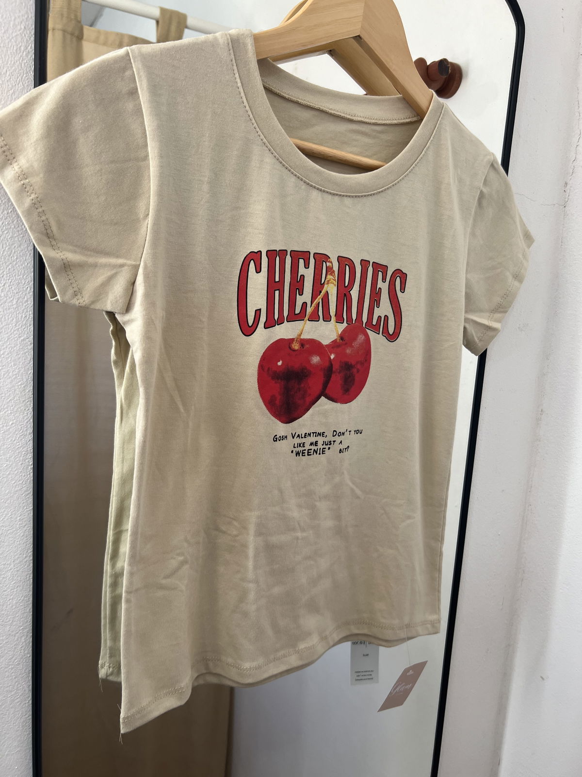 Remera de algodón jersey peinado, con estampas de cerezas, cuello redondo.