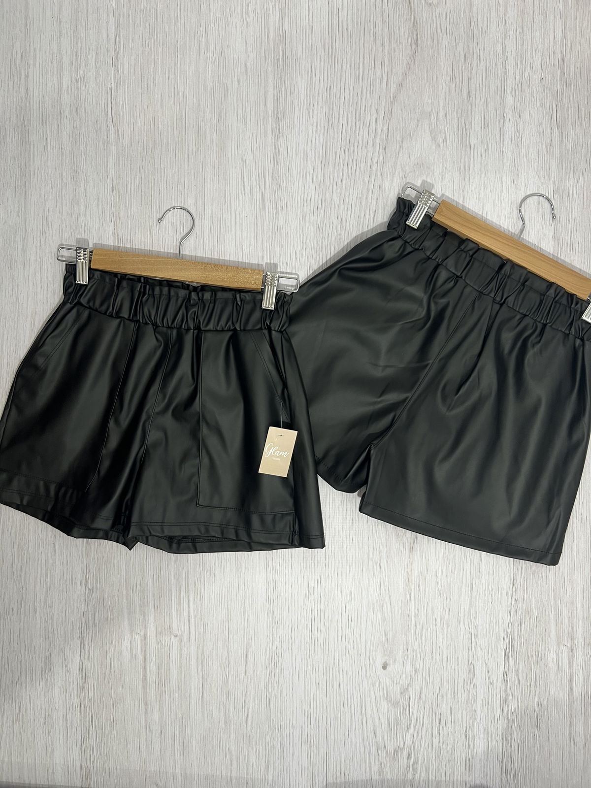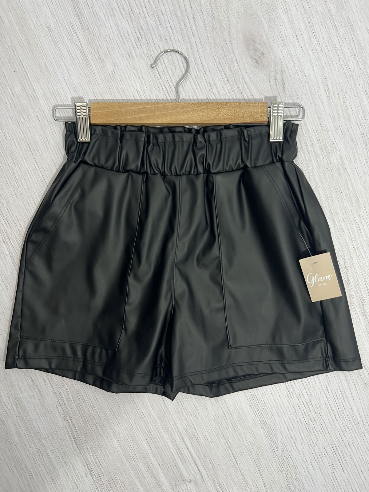 Shorts engomado Negro, con elástico en la cintura en la parte trasera.