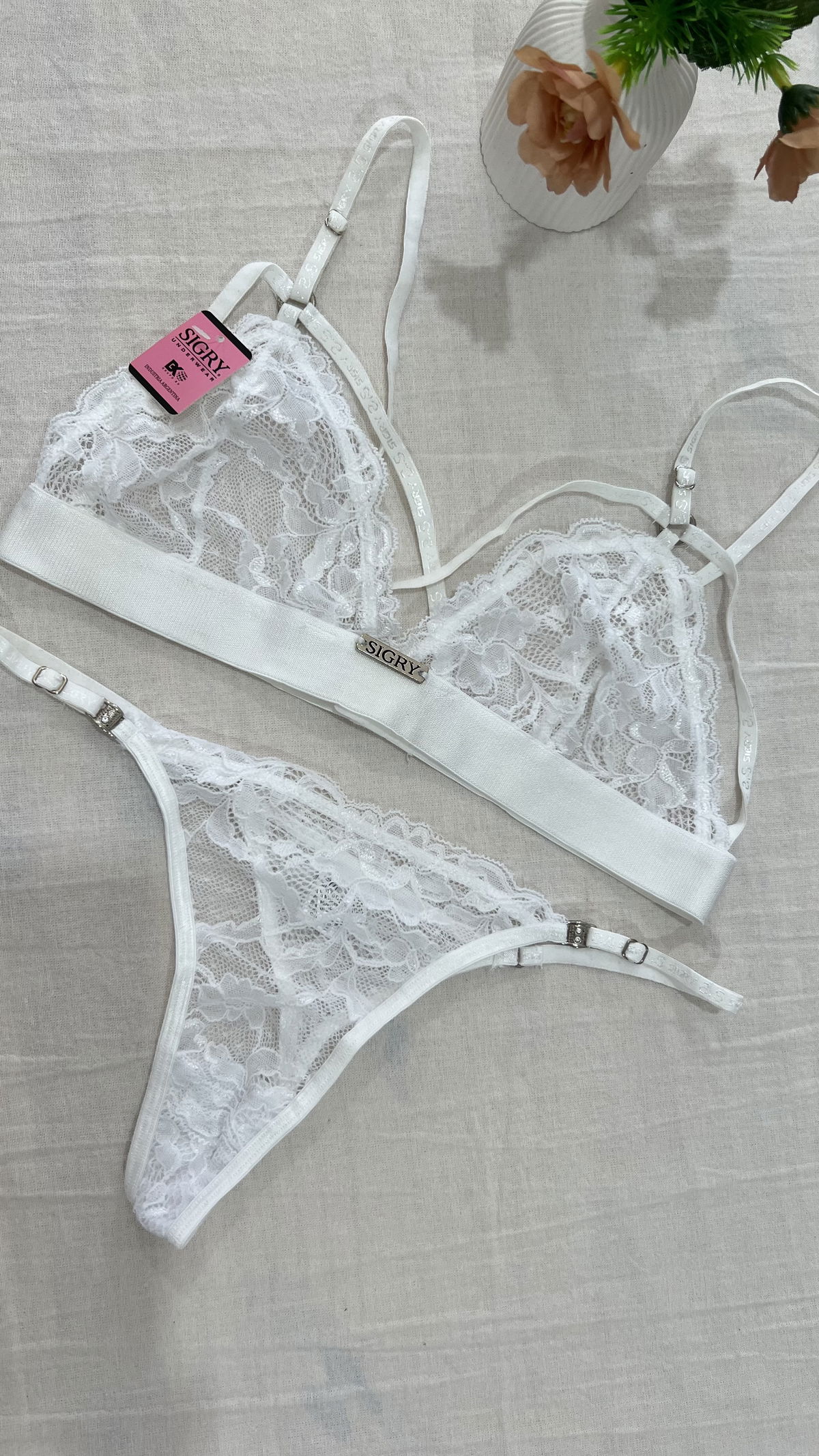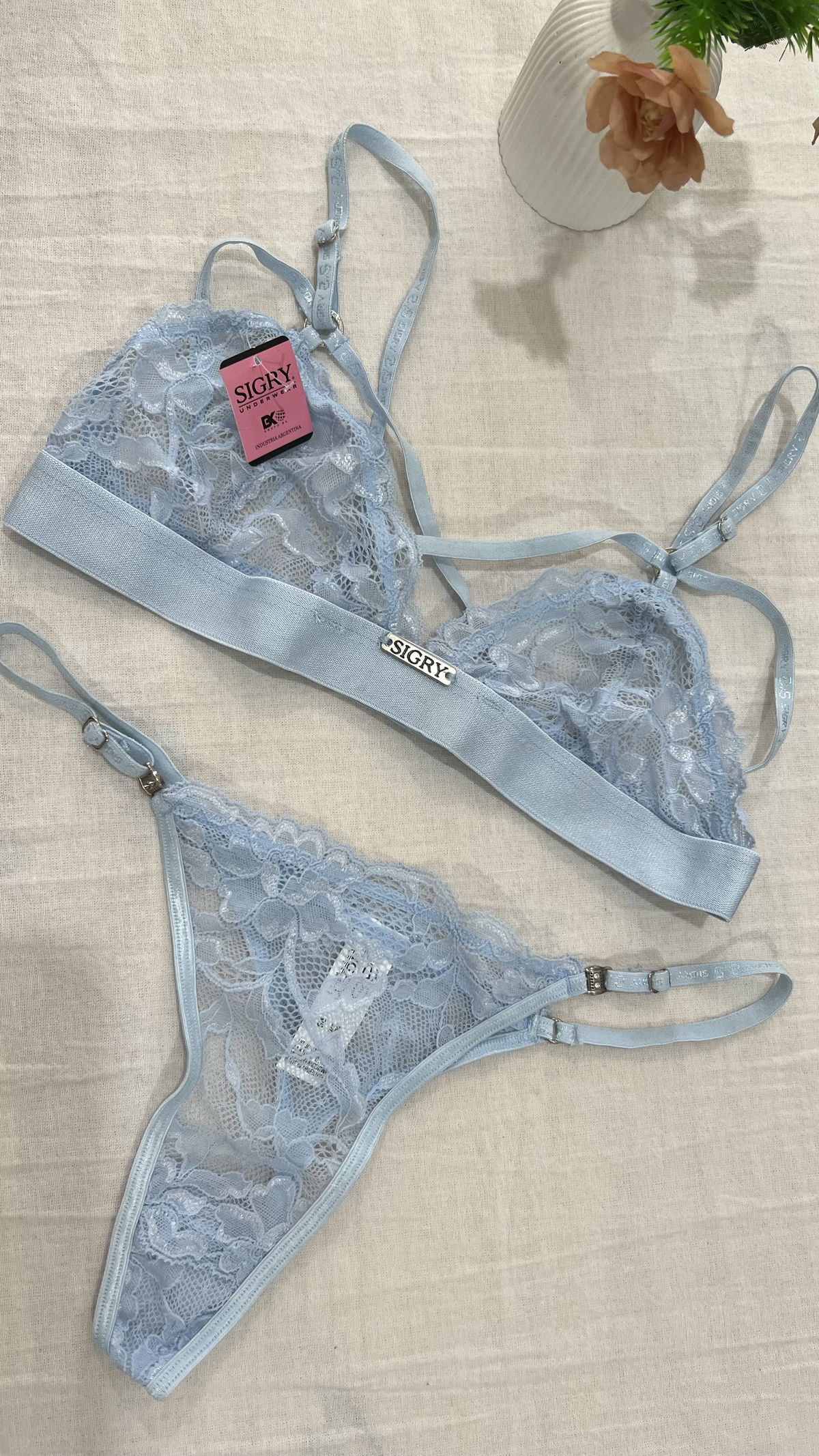 Conjunto Triangulo doble tiras y less regulable, de encaje y puntillas- SIGRY.