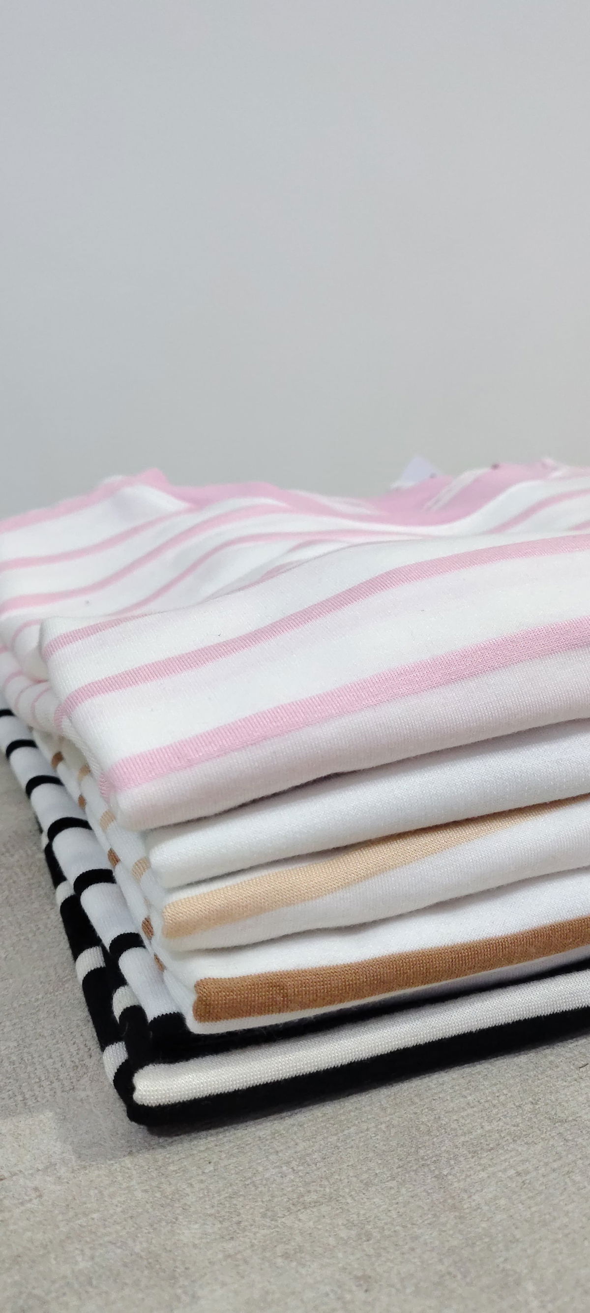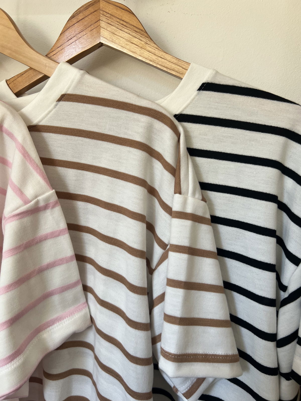 Remera rayada de algodón Premium, cello redondo estilo oversize a rayas.