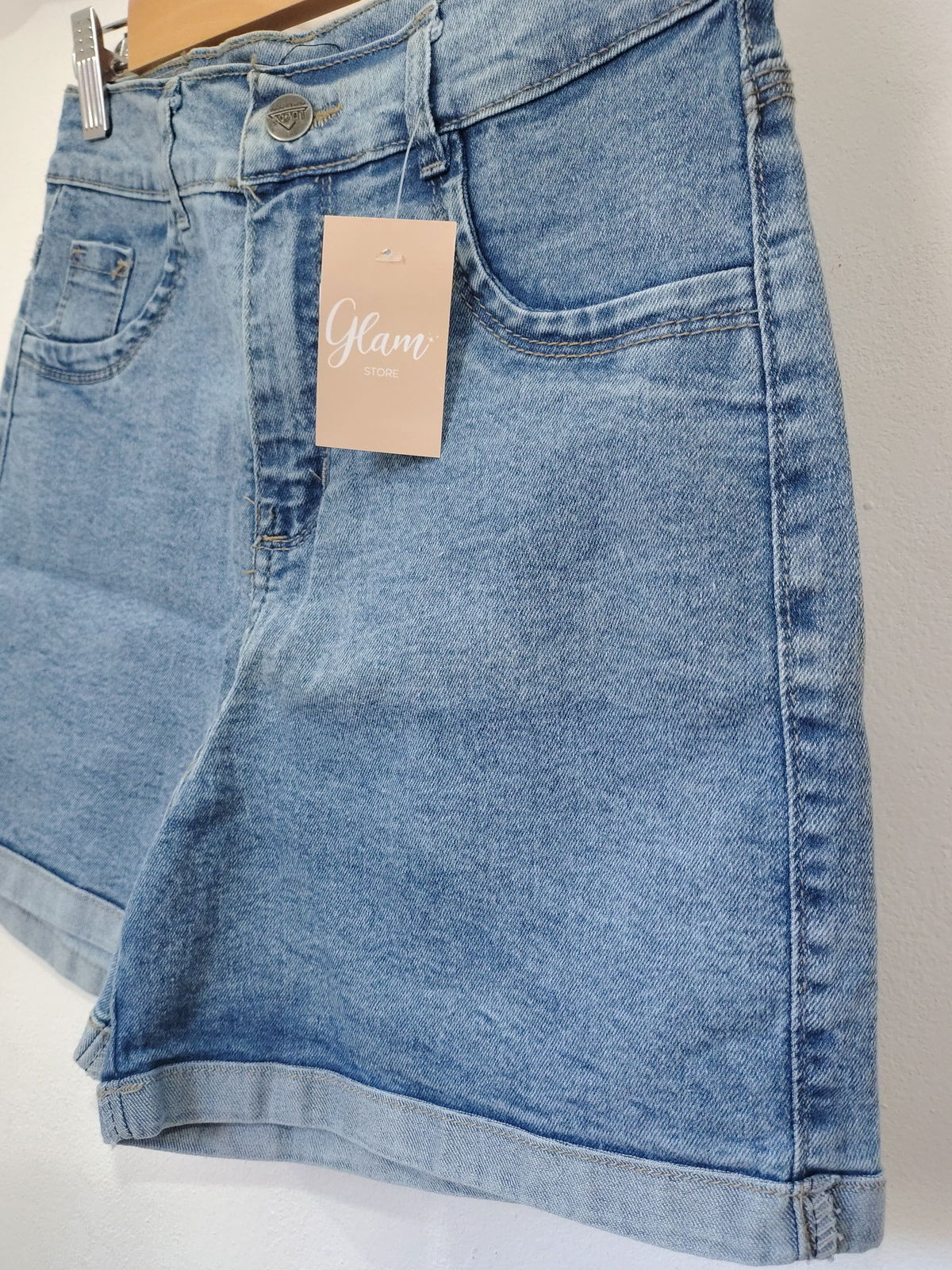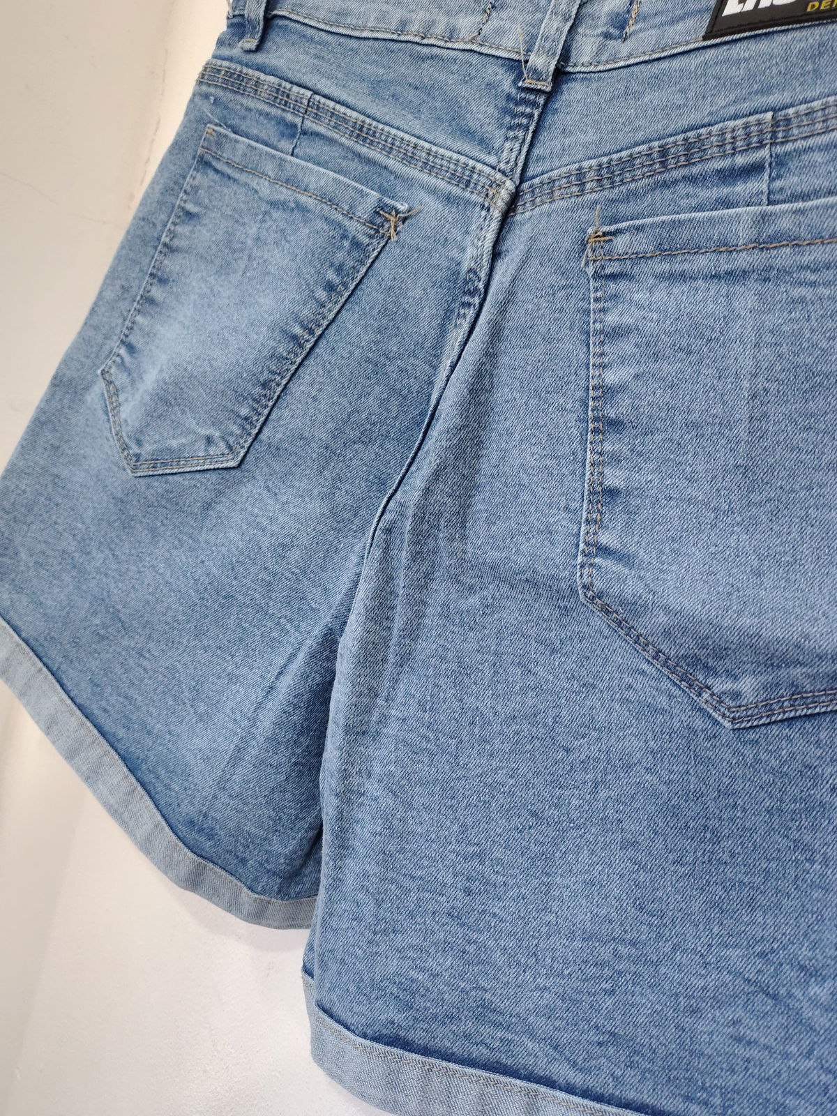 Shorts de jeans elastizado tiro alto, celeste claro.