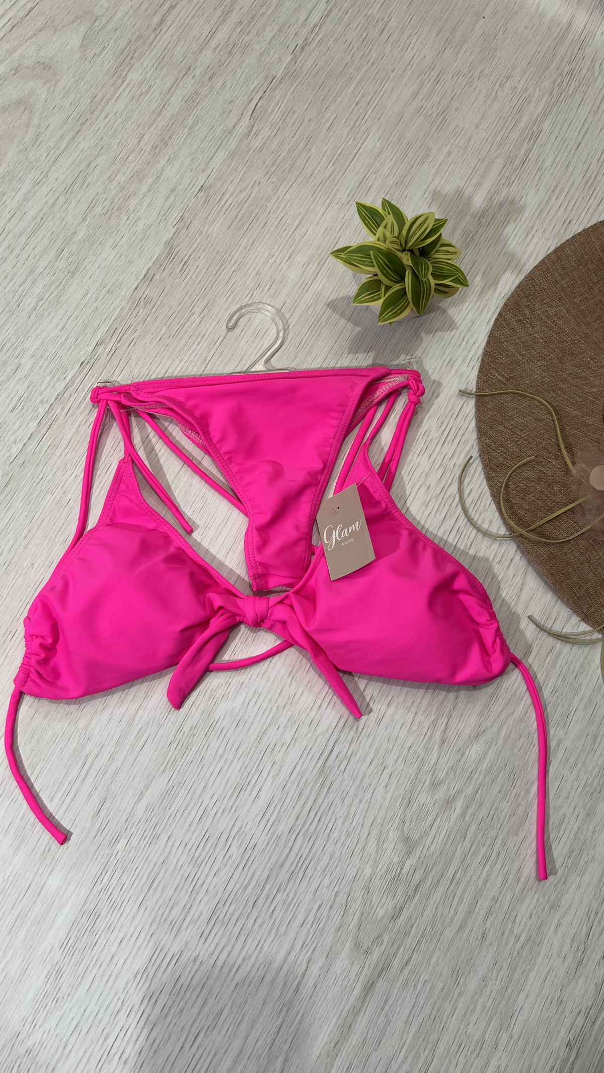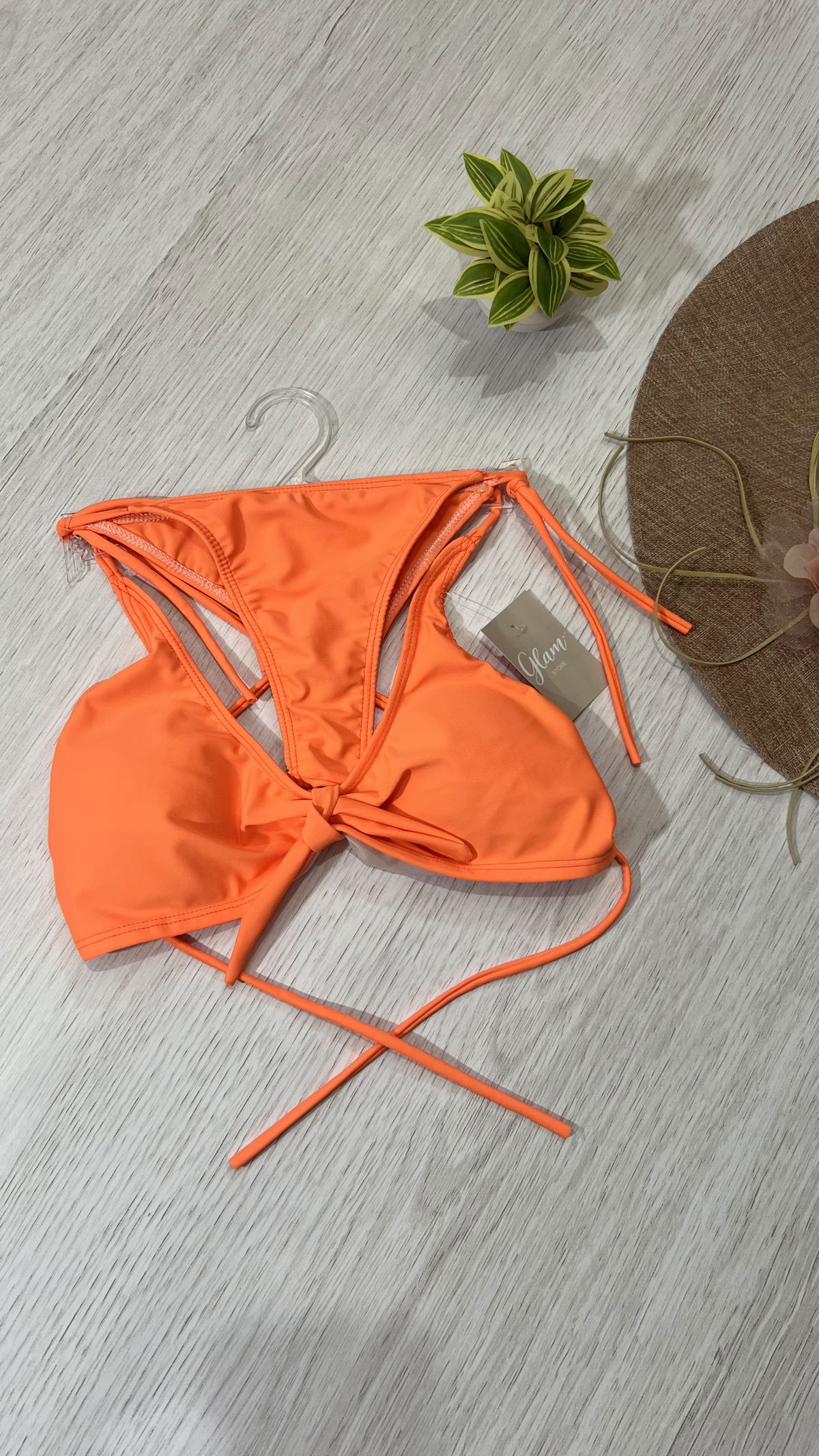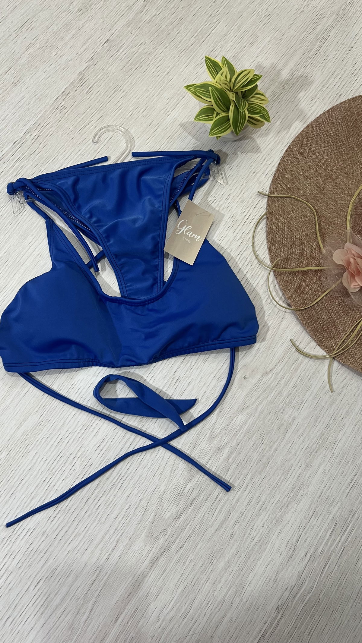 Bikini Top moño, tira desmontable para transformarla en triangulo con moño o dejarla en forma de top-Con tasa soft desmontable (espalda cruzada) y less con tiras para atar- Lycra