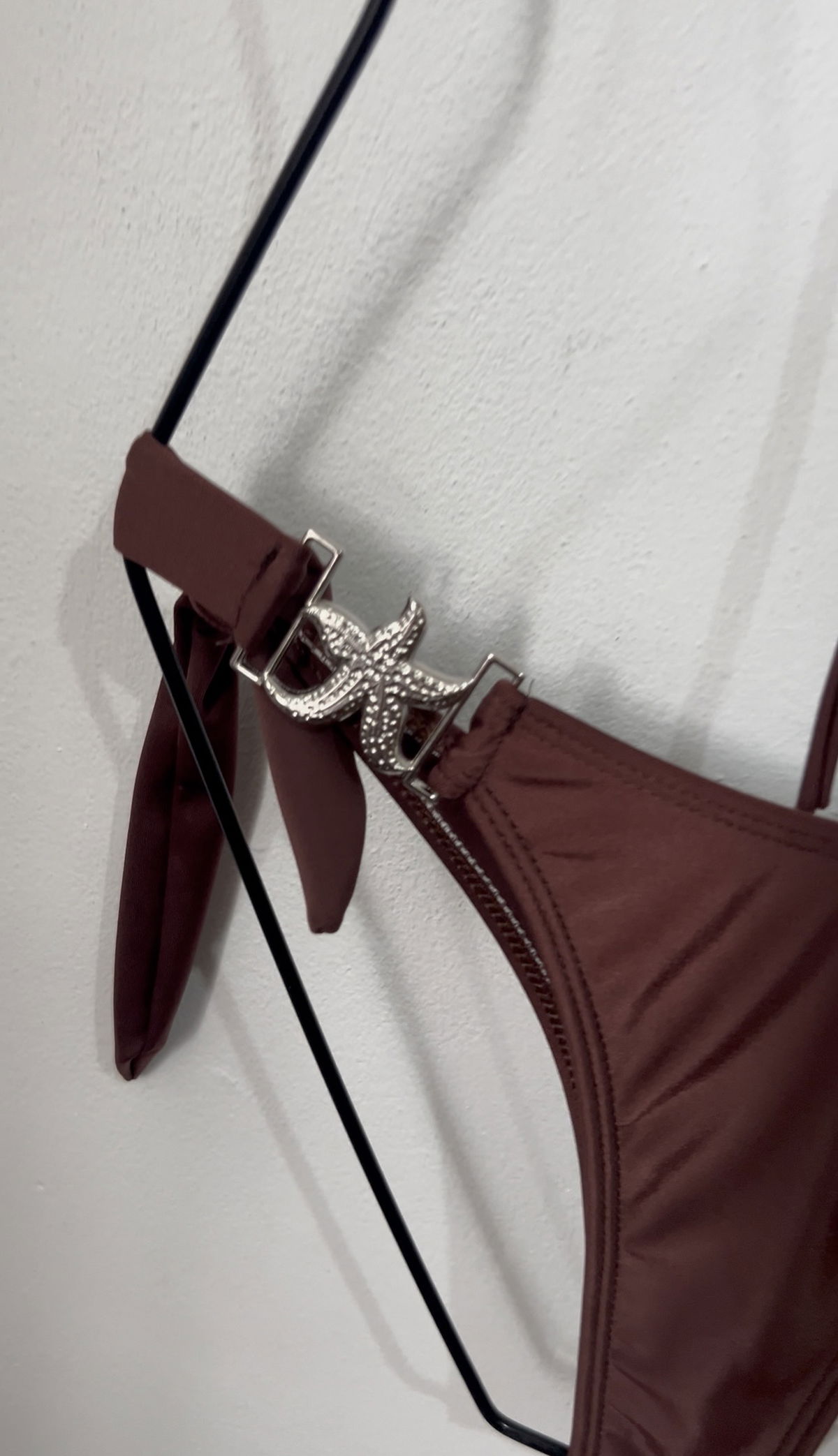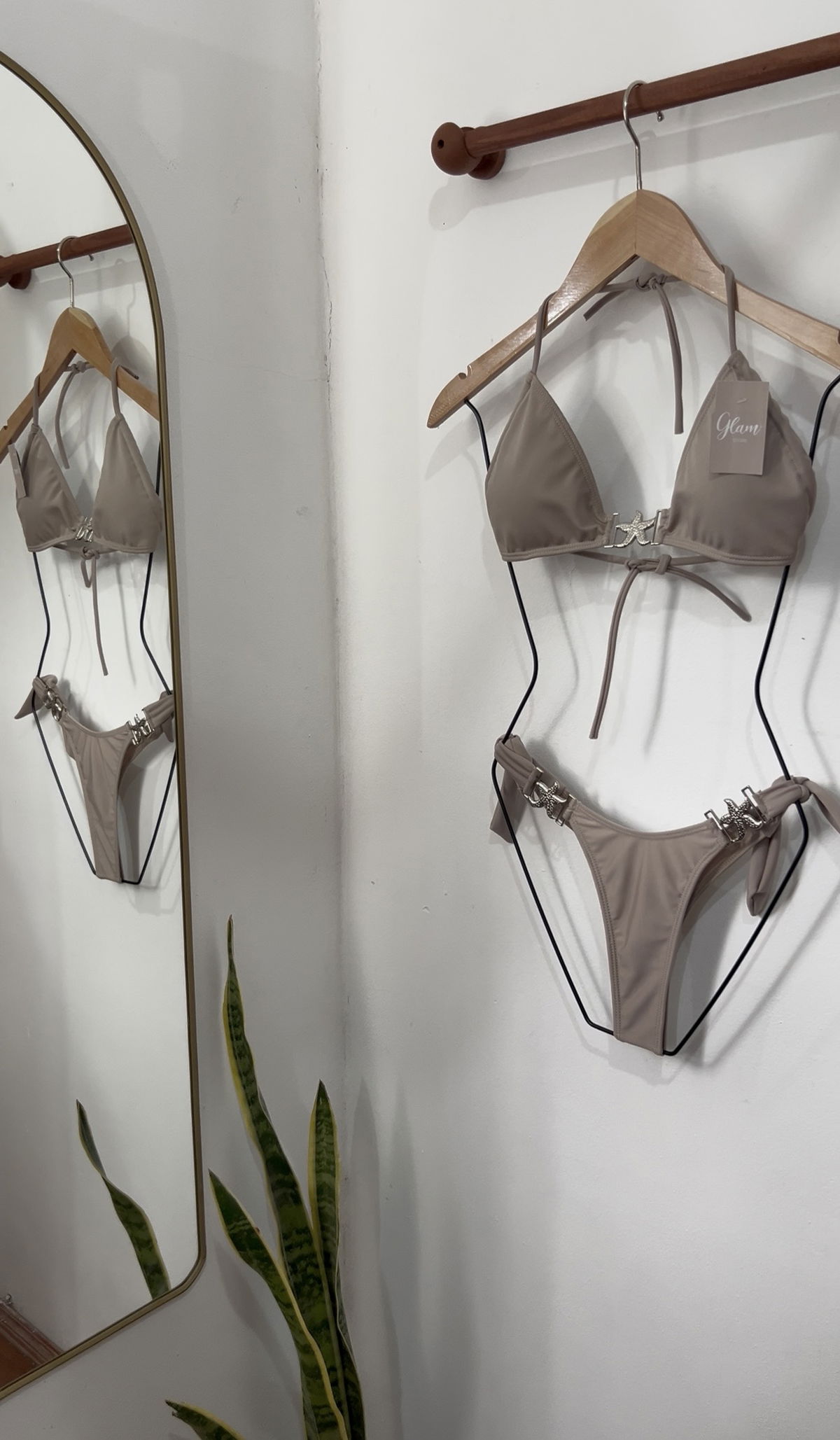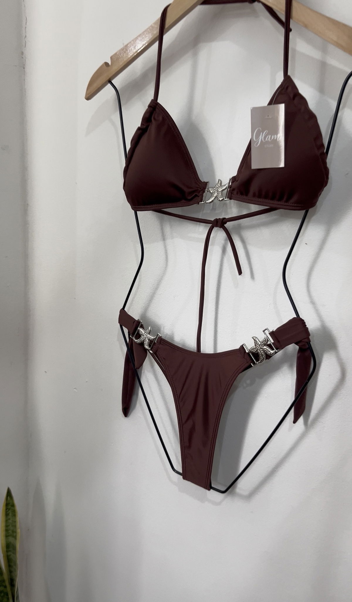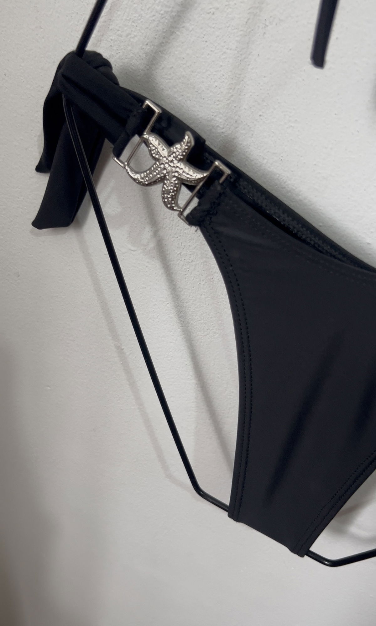 Bikini Buzios de lycra con tasa soft desmontable y less para atar en sus extremos. Avíos de estrellas, total vibras de playa ✨