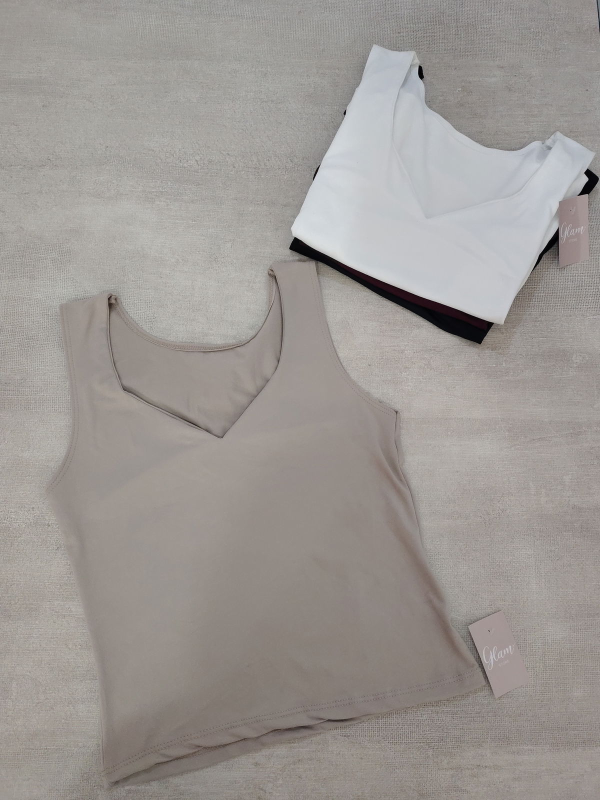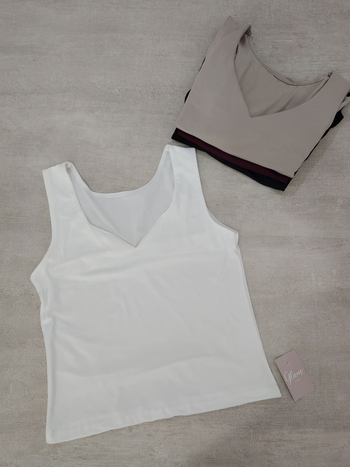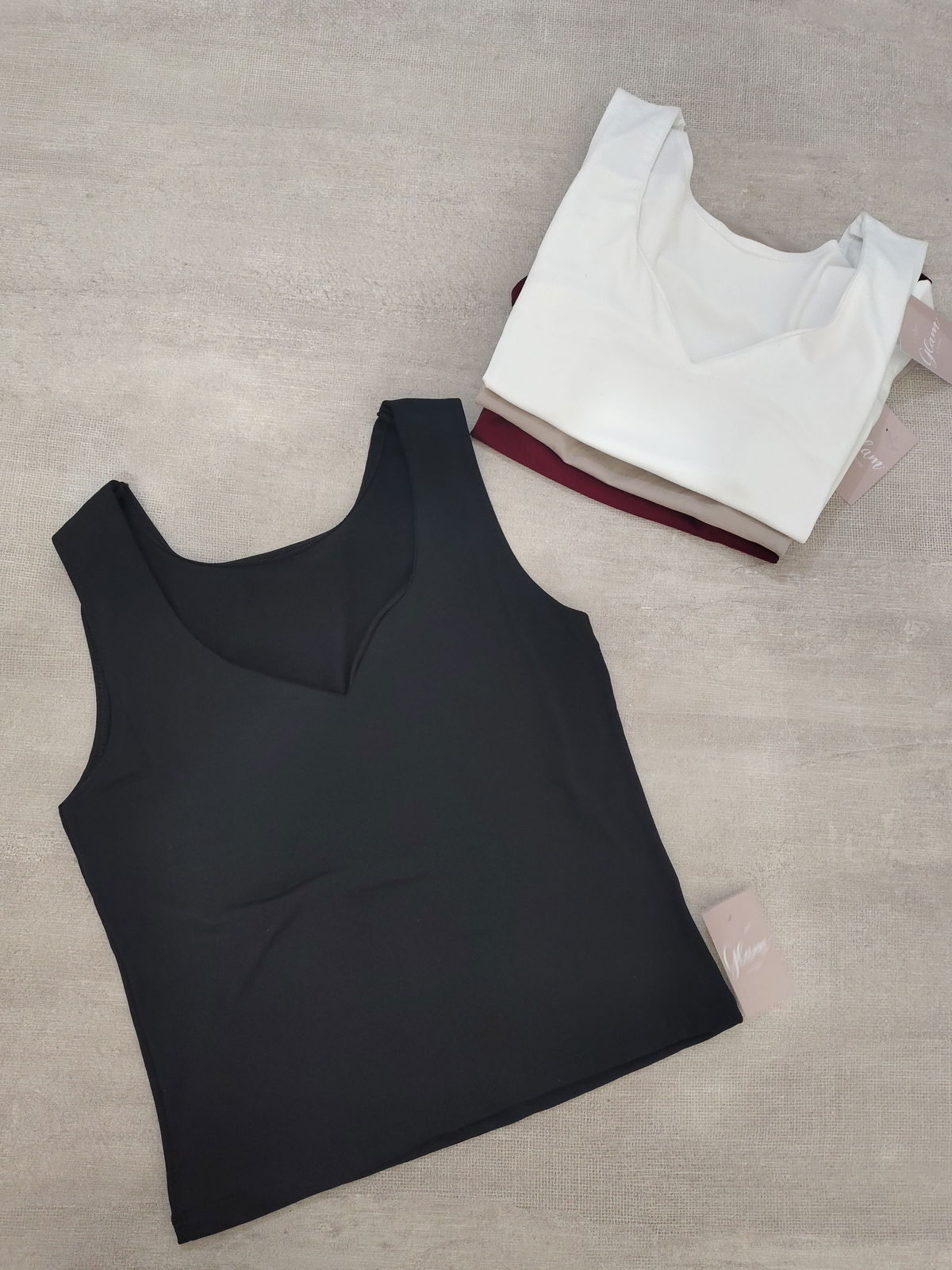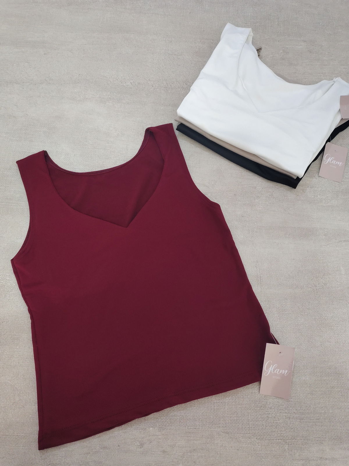 Musculosa a la cintura con cuello en V, doble tela en busto. Modal soft.