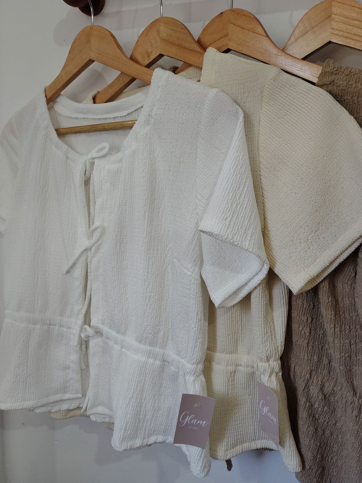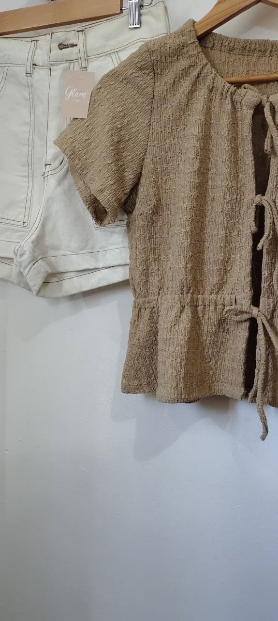 Blusa hawai brusela, con mangas cortas y tiras en la parte delantera para hacer nudos, súper fresca y cómoda.