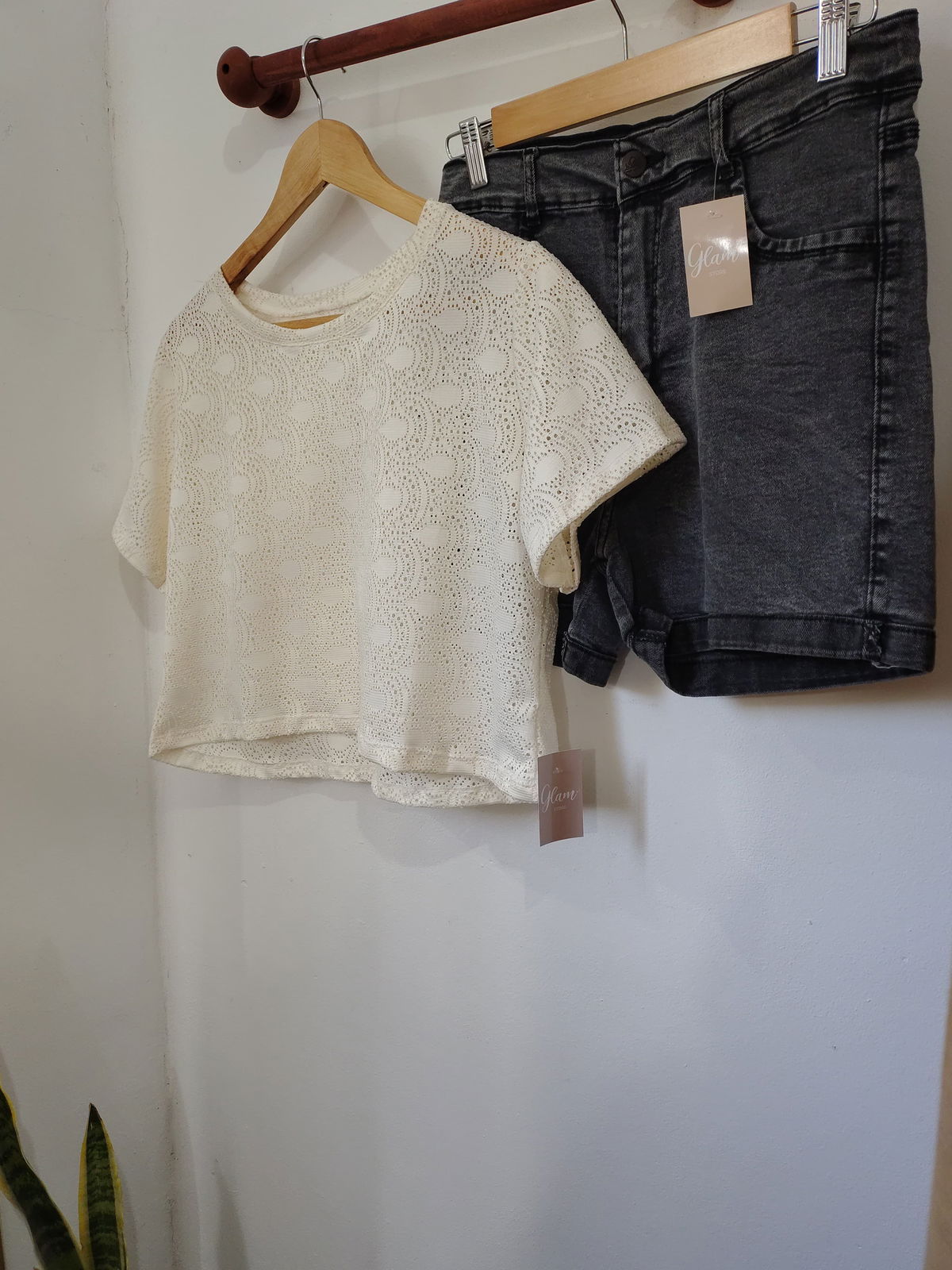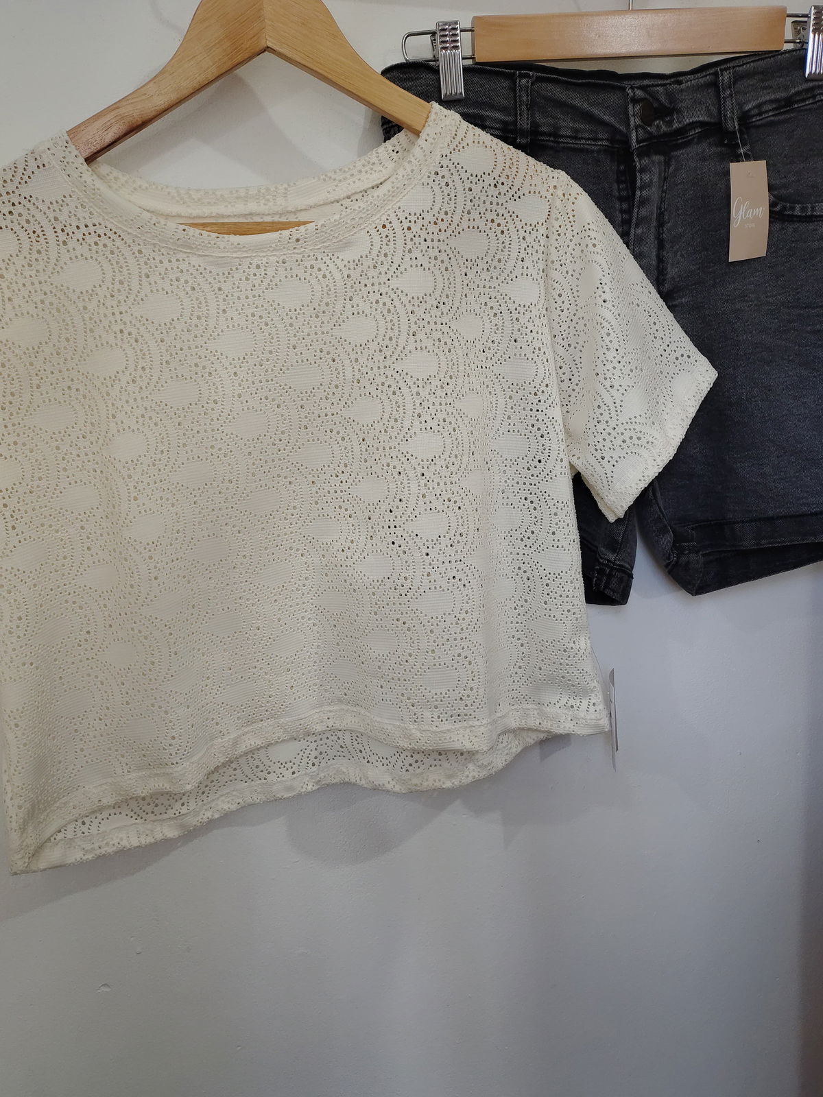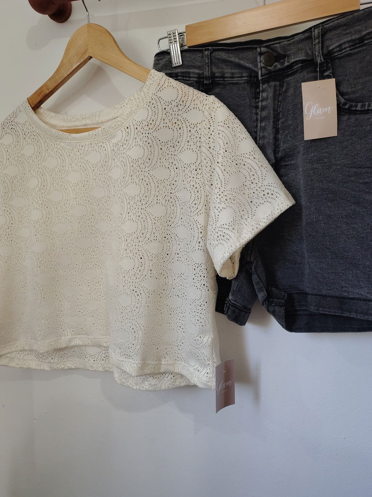 Blusa Crop de brodery. Talle único: ( Abarca hasta un talle 2 aproximadamente)