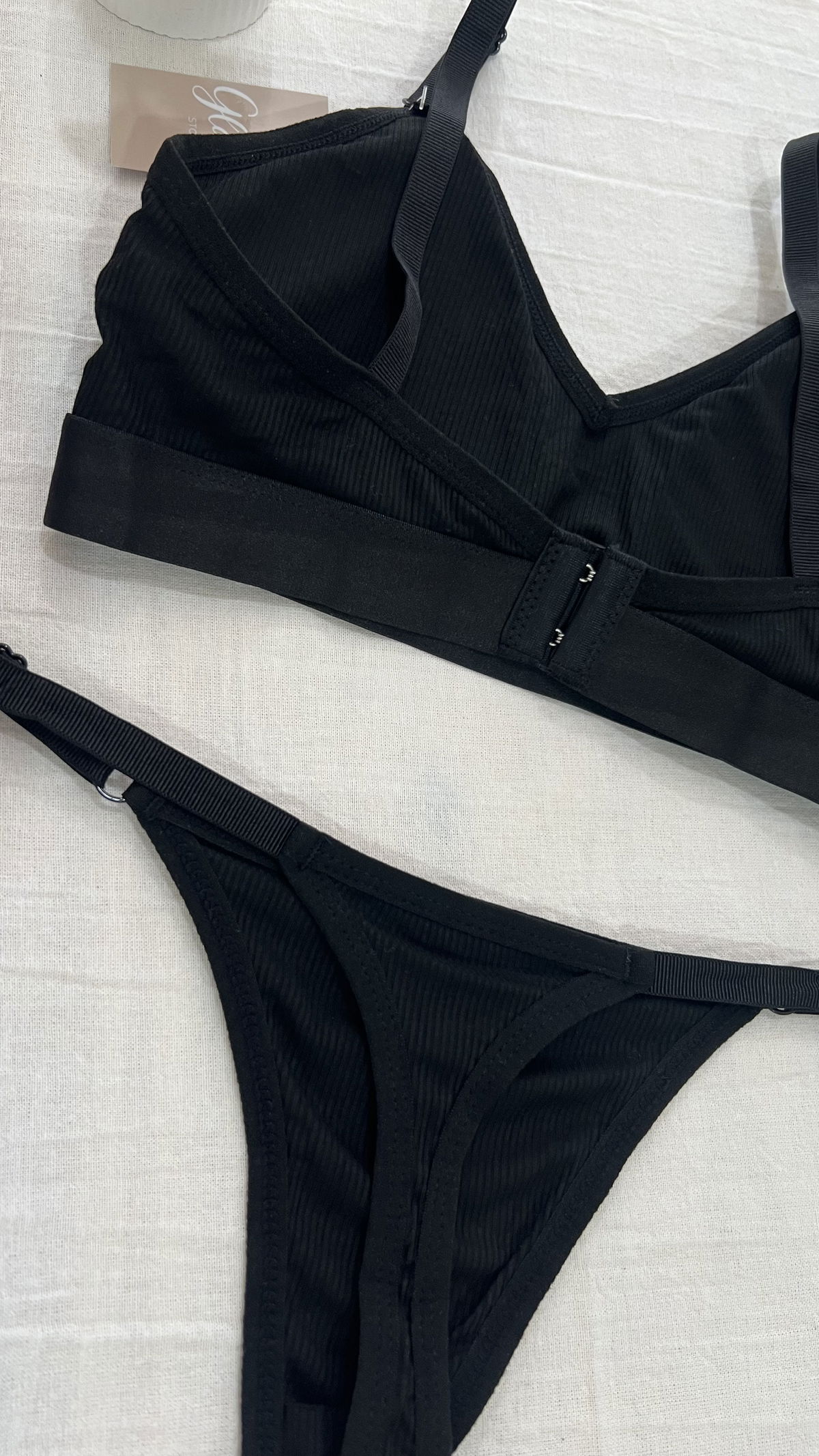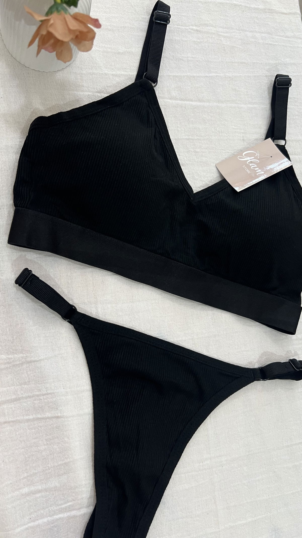 Cojunto de morley, triangulo con tasa soft desmontable con broche en la espalda y less regulable.
